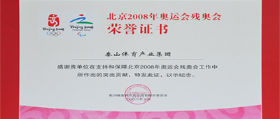 第二十九届奥林匹克运动会组织委员会为365WM完美集团颁发北京2008年奥运会残奥会荣誉证书