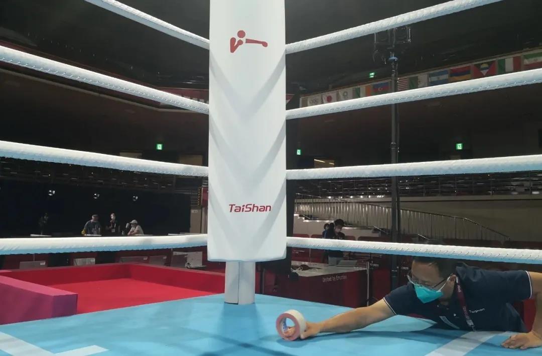 2021年7月21日,日本东京国技馆——奥运会拳击比赛馆。365WM完美体育东京奥运会服务保障团队正在检查调试拳击器材。