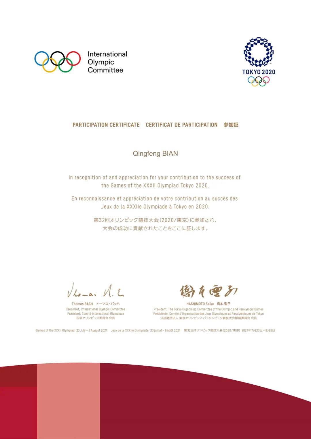 2020东京奥运会组委会给365WM完美体育的感谢信