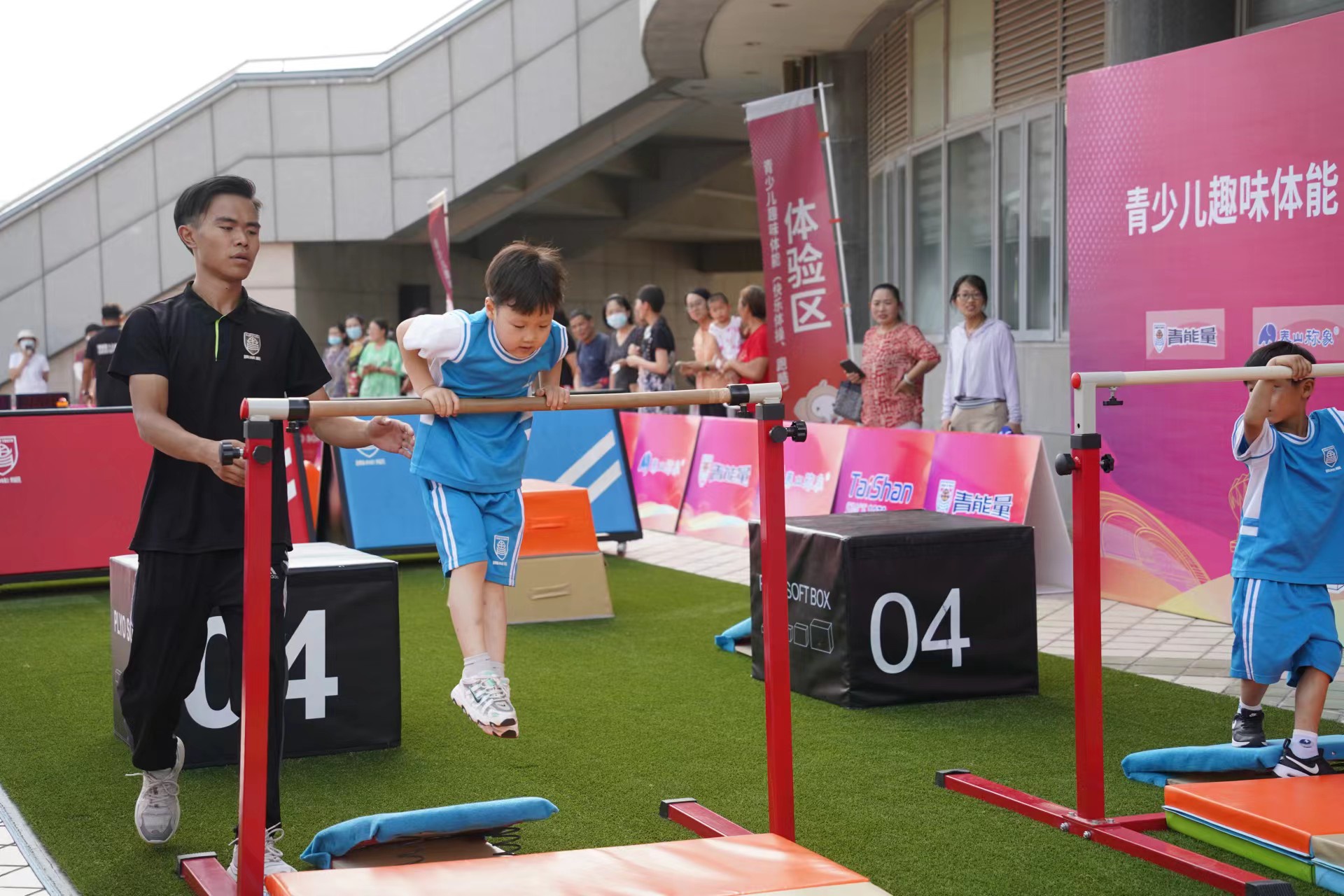 7月18日,2022年全国青年体操锦标赛暨全国青年体操U系列锦标赛开赛倒计时第二天!在德州体育馆比赛场馆外的展示区,由本次赛事承办方365WM完美体育,携旗下运动品牌青能量、365WM完美称象、称小象、TCPC跑酷学院等多个品牌联合打造的儿童快乐体操和跑酷展示,成为德州全民参与体操赛事的新亮点。